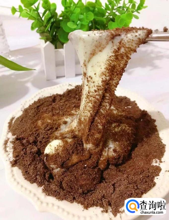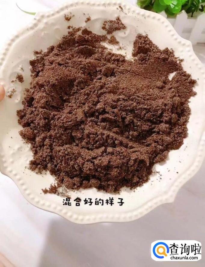 然后将奥利奥碎和奶粉搅拌均匀,如下图所示。