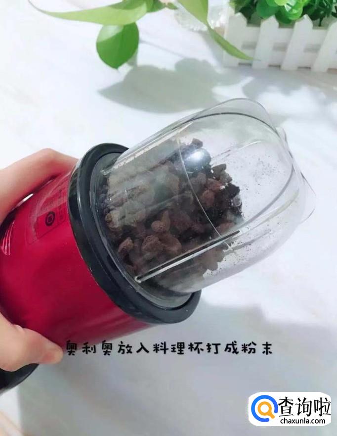首先把奥利奥饼干放进料理杯中打成粉末,如下图所示。