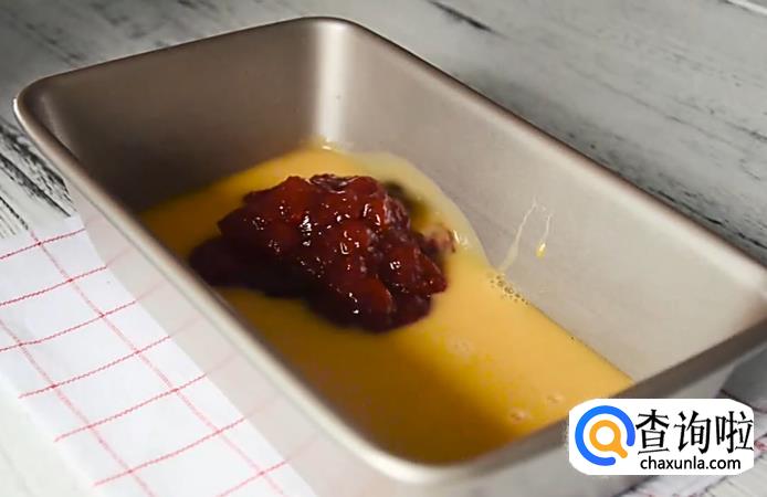 将草莓酱和牛奶倒在一个盆里,并搅拌均匀。