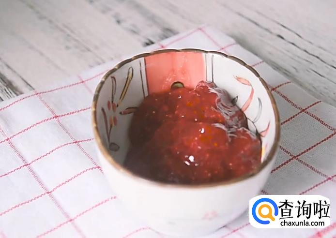 直到草莓变成糊状,草莓酱就做好了,装在碗里备用。