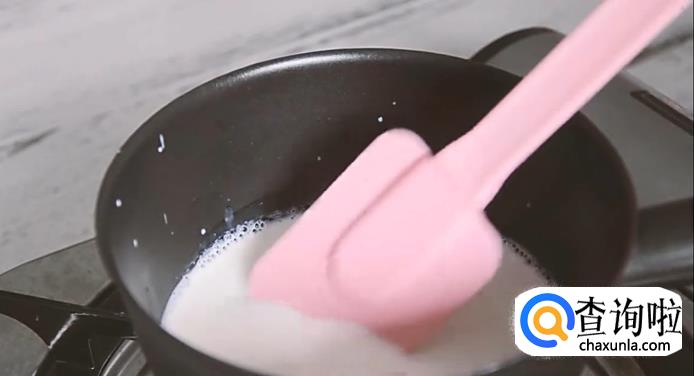 在锅里加入牛奶和白糖,把牛奶煮至沸腾,关火,再将牛奶放凉。