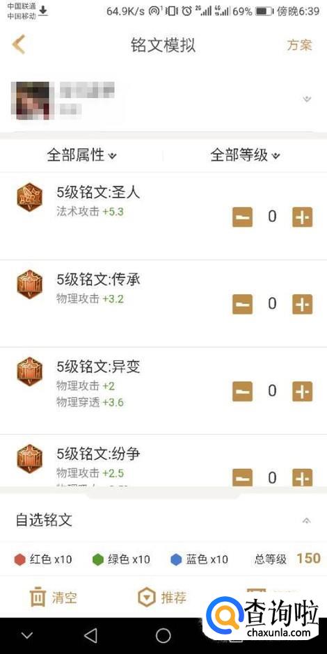 在铭文模拟界面,我们可以选择自己喜欢的或者常用的英雄,然后就可以按铭文属性挑选模拟了。铭文全部挑选后,如果你觉得全属性适合,你可以点击保存,在铭文模拟界面的方案里可以查看保存的铭文。