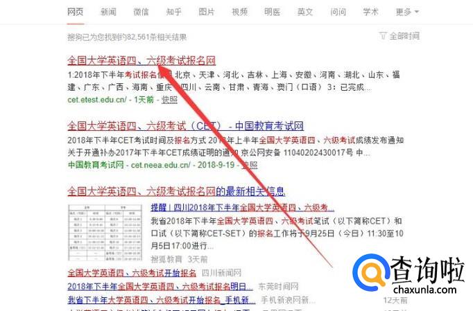 打开电脑,进入搜狗浏览器搜索“全国大学英语四、六级考试报名网”,点击并进入,如图所示。