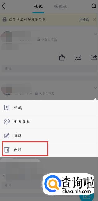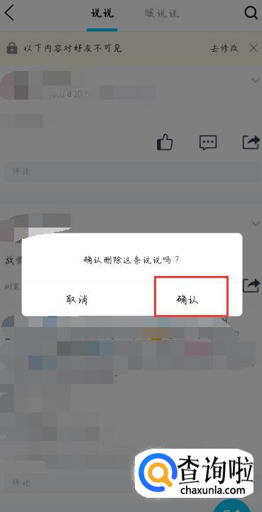 最后在新弹出来的界面中点击【删除】即可,这样已发布的说说就被删除啦。