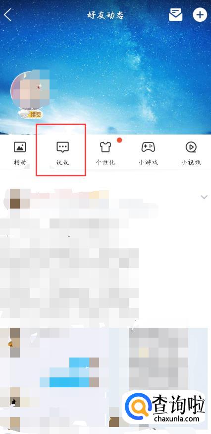 然后通过好友动态的界面,点击【说说】。