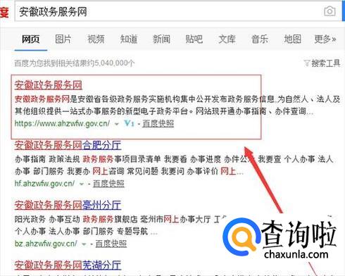 打开电脑搜索安徽政务服务网,然后选择第一个点击进去;