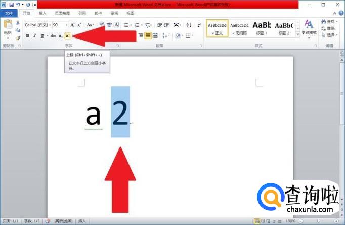 我们首先进入“Microsoft word”,在文档中输入“a 2”。
