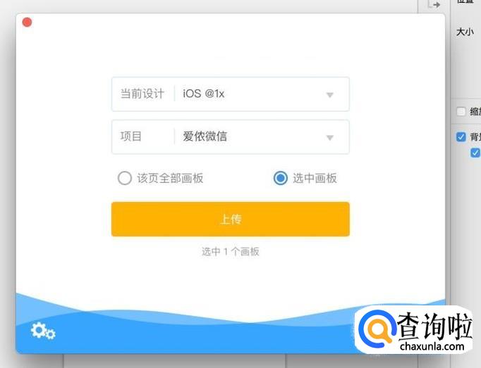 点击后弹框提示上传信息,确认设计稿尺寸以及上传的项目,选择“选中画板”,点击“上传”
