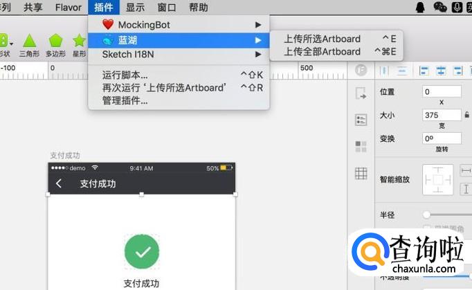 接着在sketch上方选项中点击“插件-蓝湖-上传所选artboard”,插件在搜狗搜索一下直接下载即可。