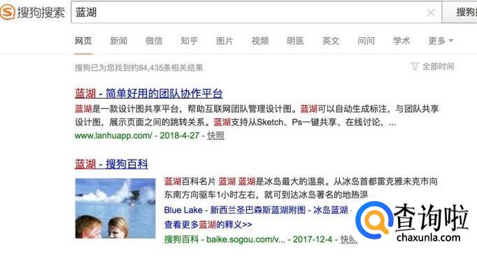 上传完成之后,我们进入搜狗搜索界面,输入“蓝湖”进行搜索。
