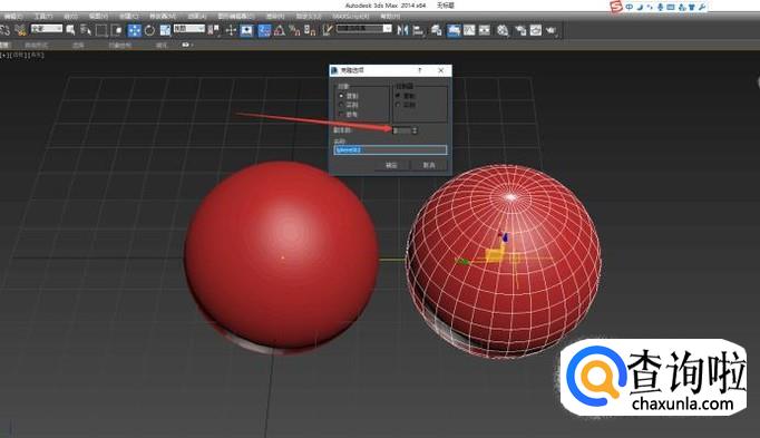 下一步,我们点击移动工具(快捷键为W),选中球体,按住shift键沿着X轴方向移动。弹出克隆选项,我们选择“复制”,副本设置为“2”.