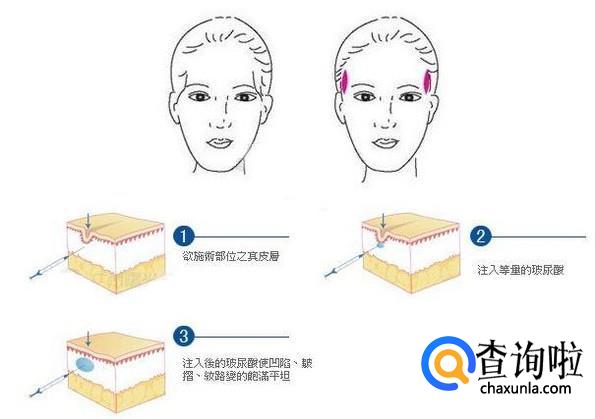 玻尿酸丰太阳穴是将玻尿酸注射到太阳穴凹陷部位,玻尿酸注入后原本凹陷的部分就会鼓起,太阳穴看起来丰满很多,但是效果只能维持一年左右的时间。