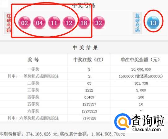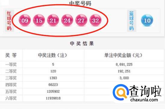 六个红色号码球与中奖号码相同(红色号码顺序不限),就可得奖金(该奖金为浮动奖金)。