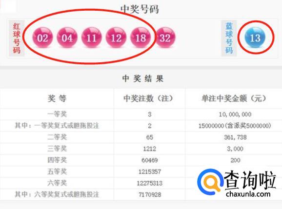 所有号码(不管红蓝色,红色号码球顺序不限)与中奖号码相同,可得奖金(浮动奖金),最高可得1000万元。