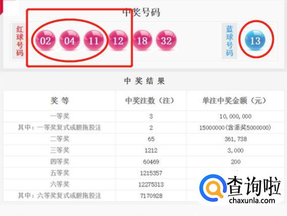 五个红色号码球加蓝色号码球与中奖号码相同,就可得3000元奖金。
