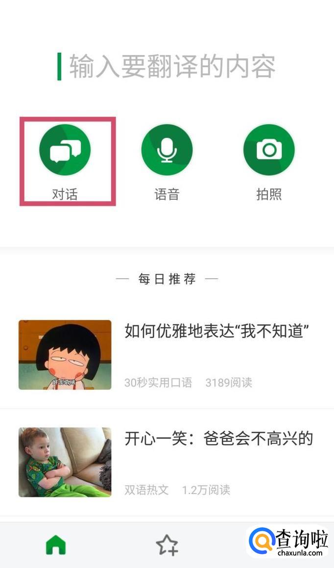 打开搜狗翻译后,在界面左上角可以找到【对话】功能。