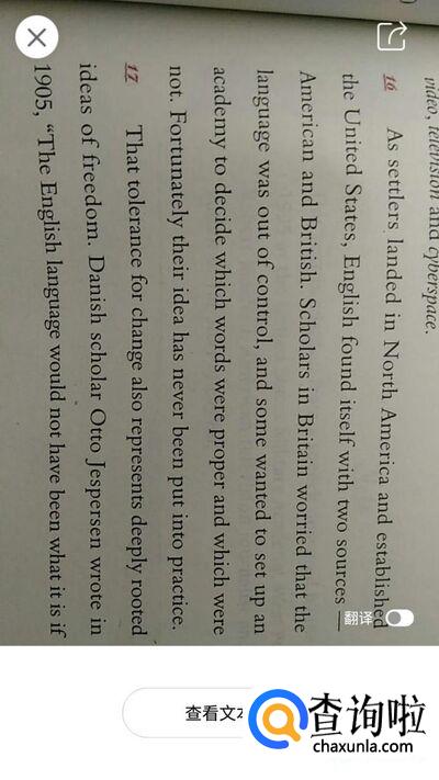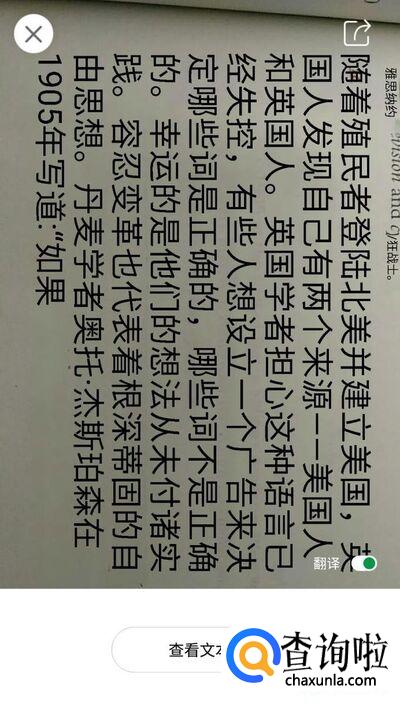 拍下照片后,系统会自动识别照片中的英文。点击【查看文本】,就可以查看翻译结果了,如图所示。