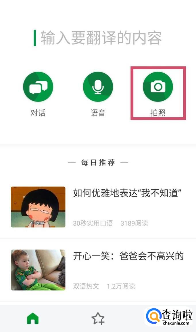打开搜狗翻译APP后,我们还可以在页面右上角找到【拍照】功能。