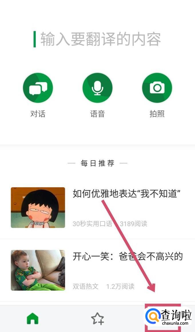 搜狗翻译APP有一个非常独特的功能是跨软件翻译,开启后我们可以直接在其他软件内进行翻译。首先我们需要在界面右下角找到一个小人头,这里是【个人中心】,点击进入。