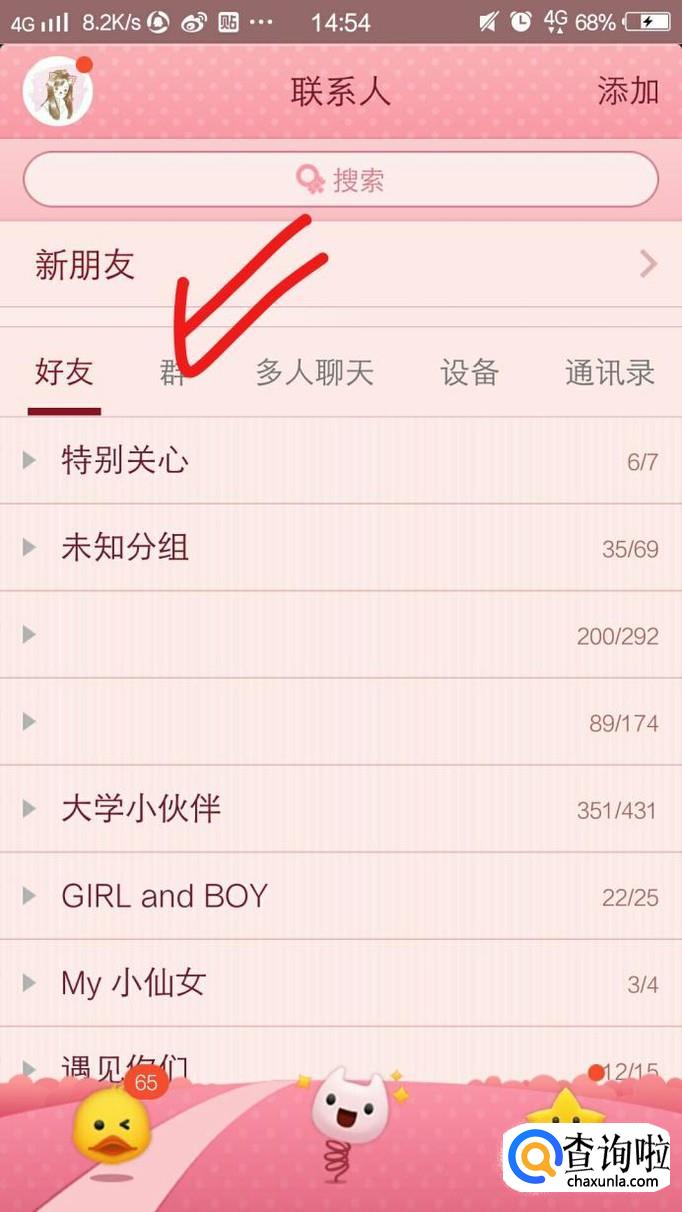 第二步,进去QQ的页面,点开群。