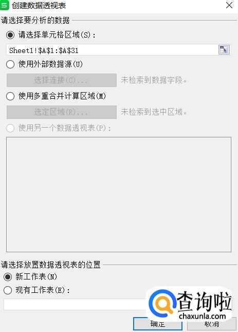 将A1:A31全部选中,选择插入,数据透视表,弹出对话框,点击确定。