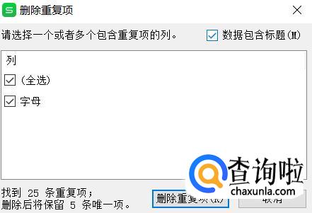 因为B列数据包含“字母”这个标题,因此选择“数据包含标题”,然后点击确定。