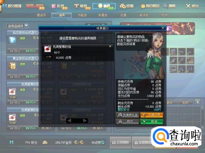 购买道具时,系统会自动扣除我们的点券,代币券或者欢乐代币券,我们并不用担心支付问题。