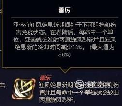 雷厉可以减大招的CD,同时当亚索的大招攻击到敌方英雄的时候,就会再次朝这个英雄释放两道旋风,再次对敌方英雄造成伤害。