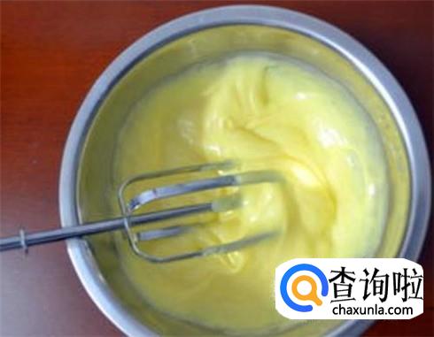 鸡蛋只要蛋黄,大概两三个就可以了。半盒牛奶,一到两勺白糖,全部放在一起之后打匀。