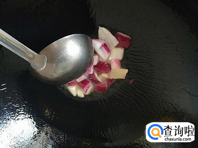 炒菜锅加入适量的植物油烧熟,把洋葱倒入锅里翻炒几下。