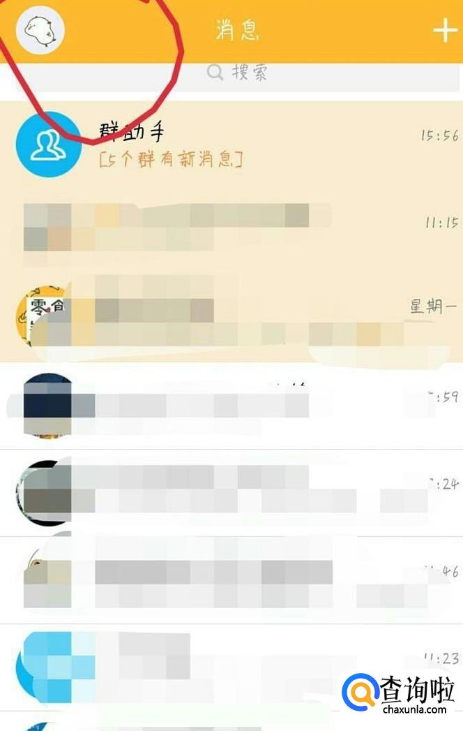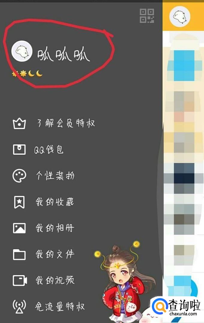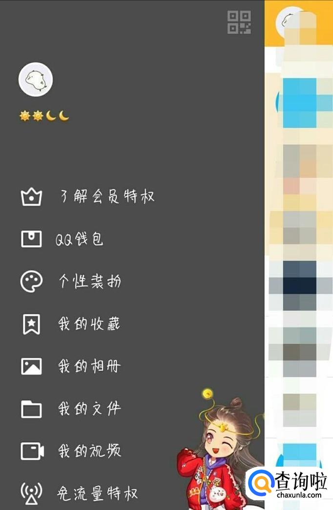 首先打开qq软件,在主界面点击左上角的头像也可以向右划屏幕