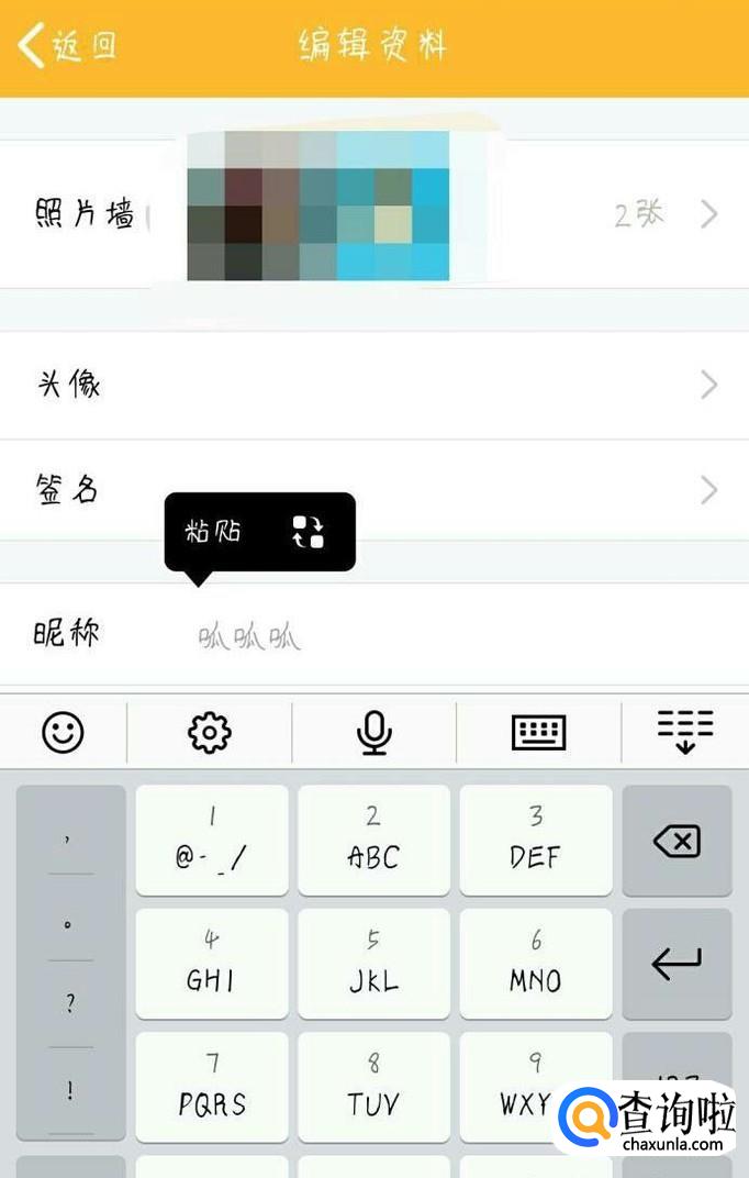 然后复制【 】这个括号里面的内容,在昵称那一栏里删掉原来的昵称,粘贴刚刚复制的内容