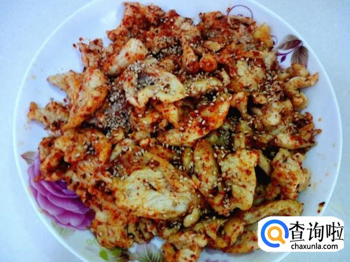 鸡胸肉味道鲜美,肉质细腻,营养丰富。小编为大家介绍的孜然鸡胸肉的做法,是把腌制后的鸡胸肉,用锅炒熟,再撒上烧烤调味料,口感滑嫩,味香独特,口味极佳,有一种浓浓的烧烤味道,下面介绍一下做法。