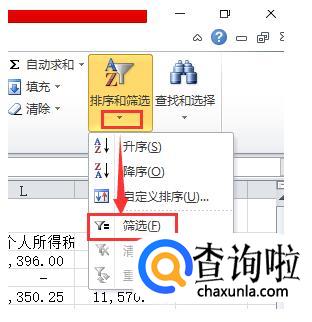 点击图中框选的小三角展开选项列表,点击筛选。