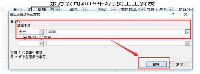 输入筛选金额10000,点击确定,筛选完毕(注意筛选时的前后顺序)。
