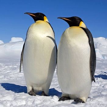 企鹅是一种非常古老的游禽。它们主要是栖息在南半球,归属于企鹅目、企鹅科。由于身体笨重,翅膀短小,企鹅是不能够飞翔的。也许企鹅在陆地上显得十分笨拙,不过它一旦进入水中就会变的非常灵活,成年企鹅每天几乎能够游150千米、时速为27km/h左右。它们以乌贼、小鱼、磷虾为食物。