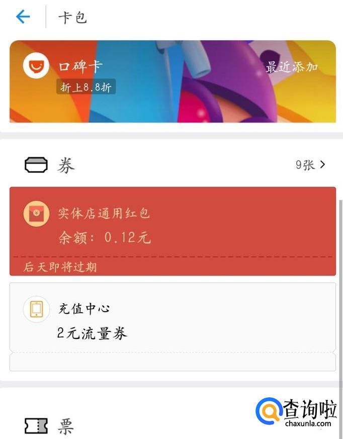 在支付宝首页中,你可以看到卡包,点击进去,就可以查看你领取的红包了,还会通知你多久过期。