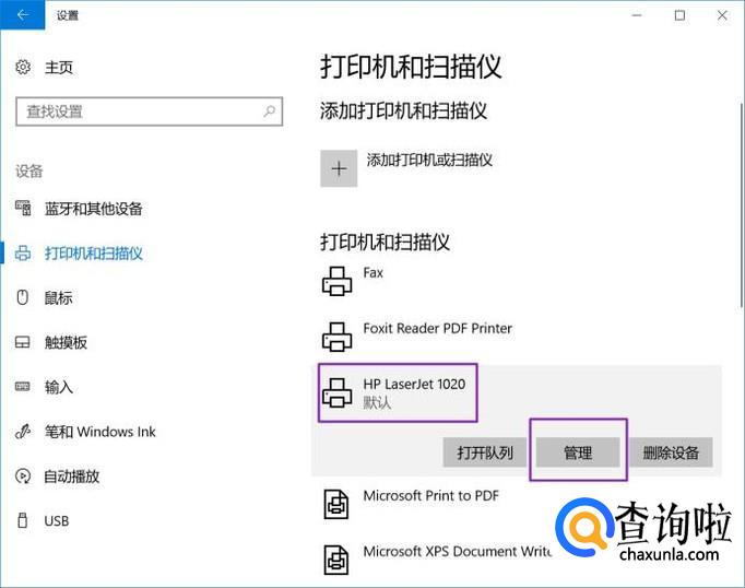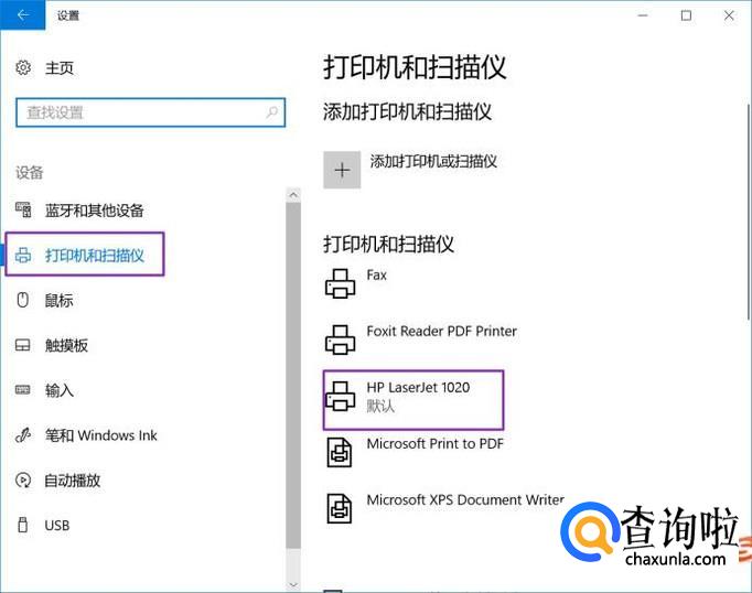 弹出的界面,我们点击打印机和扫描仪,然后找到我们连接的打印机;