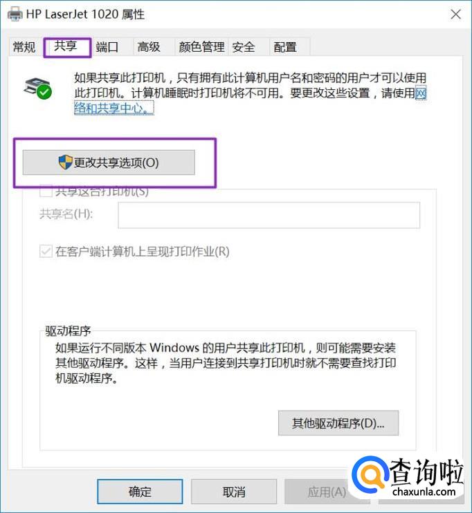 弹出的界面,我们点击共享,然后点击更改共享选项;