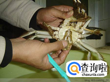 刷完壳,接着继续刷螃蟹肚,肚子上有块三角的地方,也翻开用牙刷刷干净。