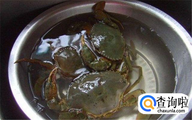 将准备好的螃蟹放入盆中,倒入清水,将螃蟹泡2个小时,让螃蟹进行充分的吐沙。