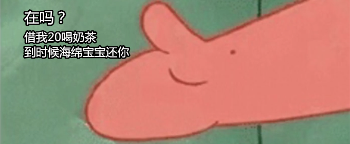 在吗?借我20喝奶茶,到时候海绵宝宝还你。这组表情包近日非常流行,很多小伙伴就在问借我20喝奶茶是什么梗,有何内涵意思吗?