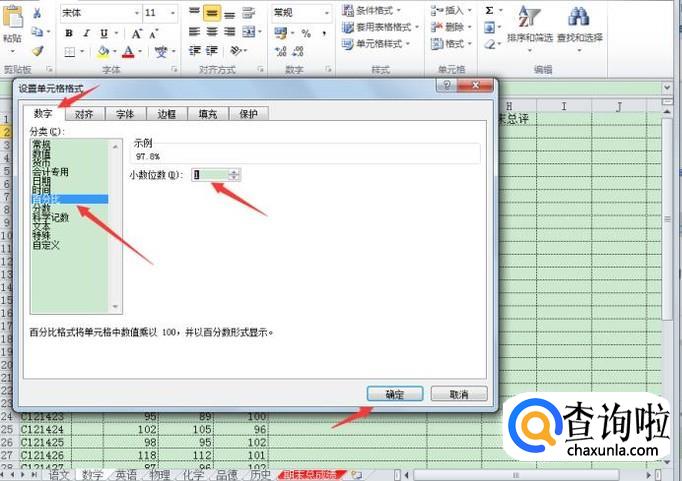 点击里面的百分数,将保留小位数设为自己所需的,点击确定,如图设为1位小数