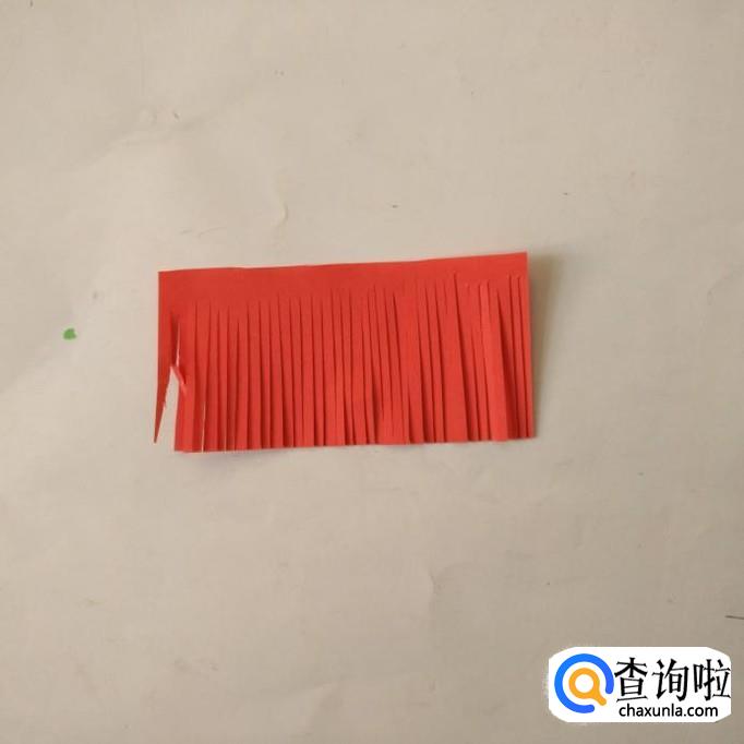把长方形纸剪成碎条(上面不要剪断),然后卷起来把连接处粘住。