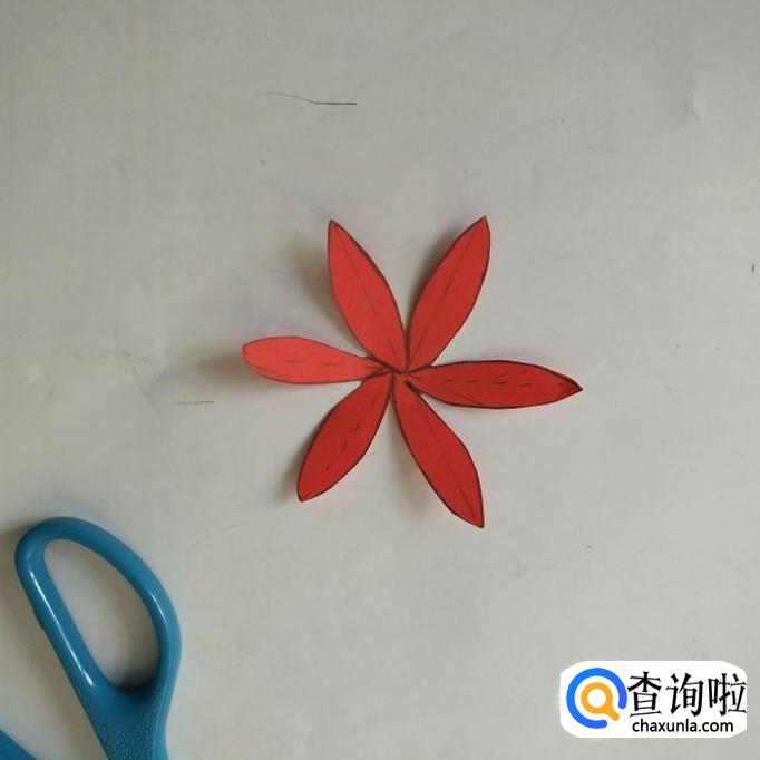 把剪好的六瓣花先依次粘上四瓣。