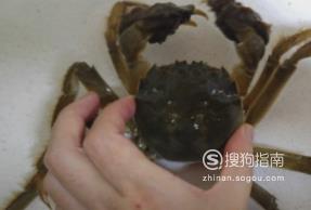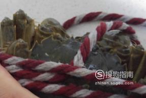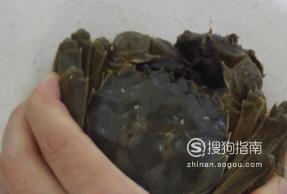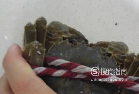 首先,我们要先将螃蟹压住,不让它动,这样才能起到固定螃蟹的作用。