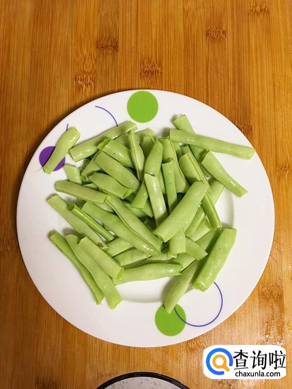 豆角掐去两头,再掐成小段,用清水冲洗干净,沥干水分放入盘中待用。
