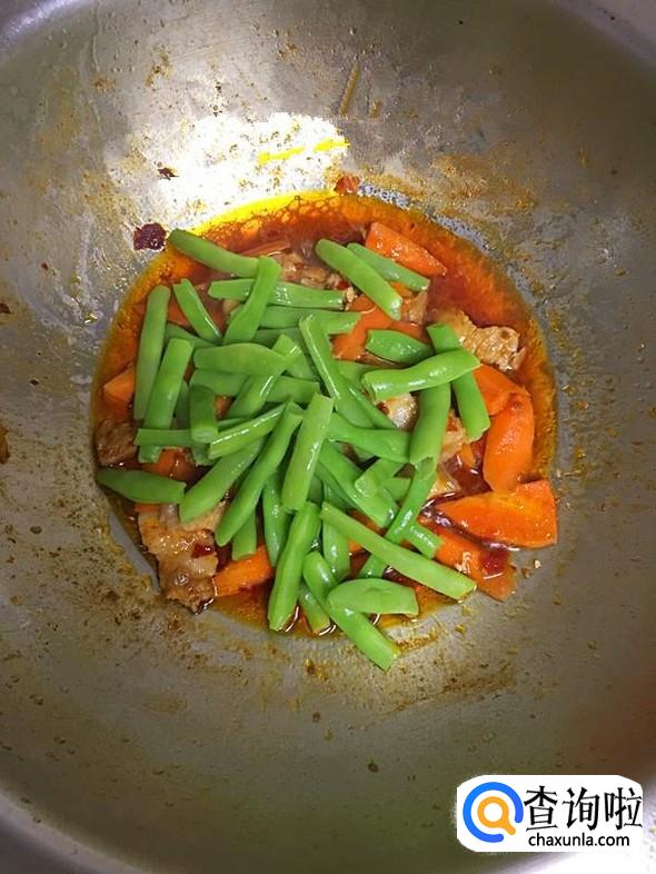 在豆角和胡萝卜变软后,转大火,当汤汁变得浓稠时就可出锅装盘了。