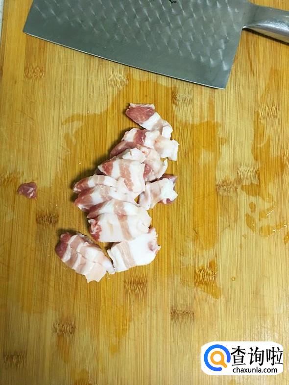 五花肉用温水清洗干净,切成薄片。