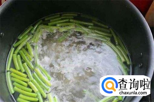 将切好的蒜苔放入沸水中,并倒入适量的食盐一起煮制,一般五分钟左右即可煮熟捞出晾凉。